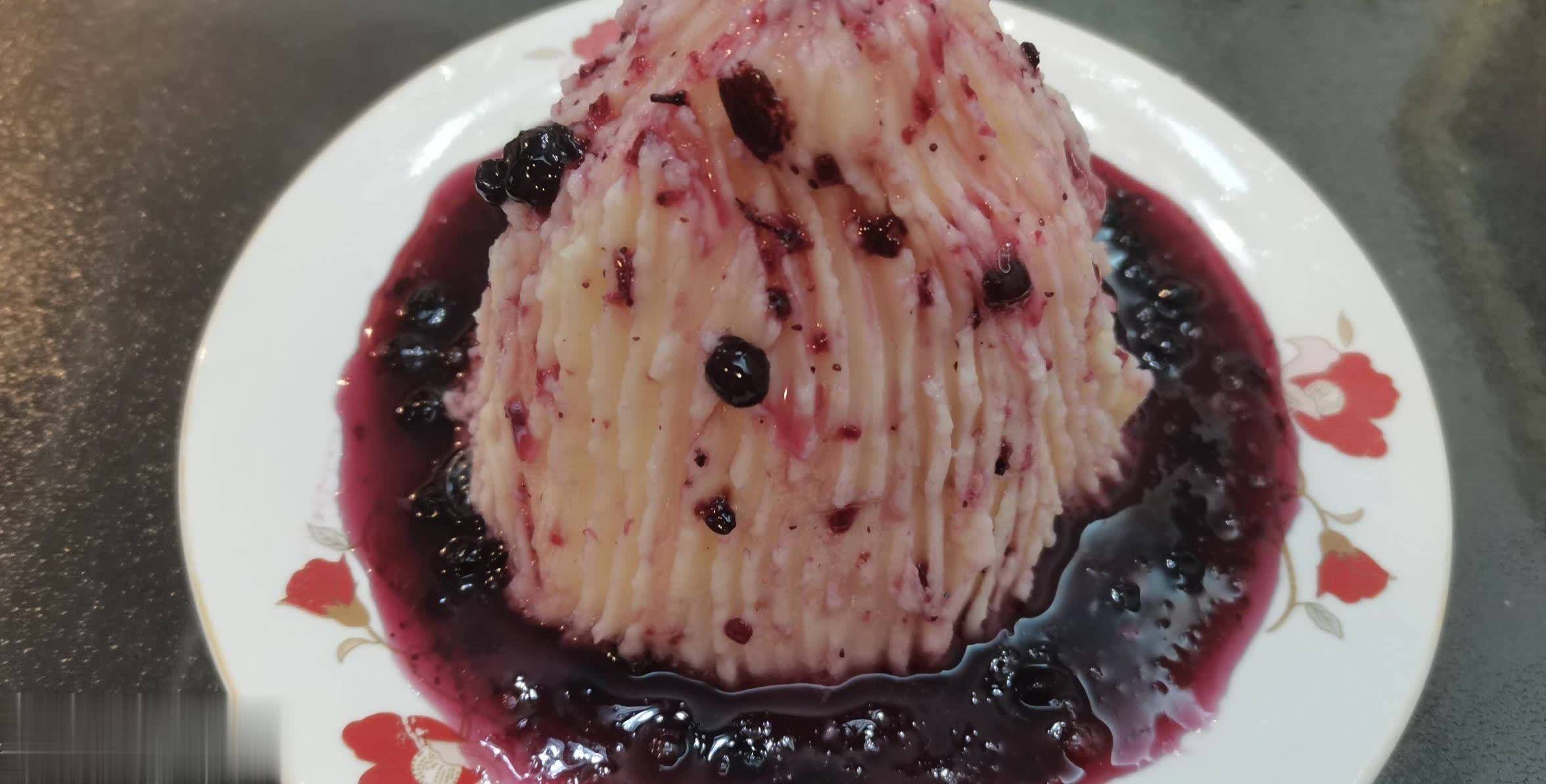 将蒸好的山药块取出放入碗中,用勺子反复按压碾压,直到把山药块压成细腻无颗粒的山药泥。若想让菜品造型更美观,可以将山药泥装入小碗中压实塑形,之后倒扣在盘中。最后把熬好的蓝莓酱均匀淋在山药泥表面,一道颜值与口感兼备的蓝莓山药泥就做好了。